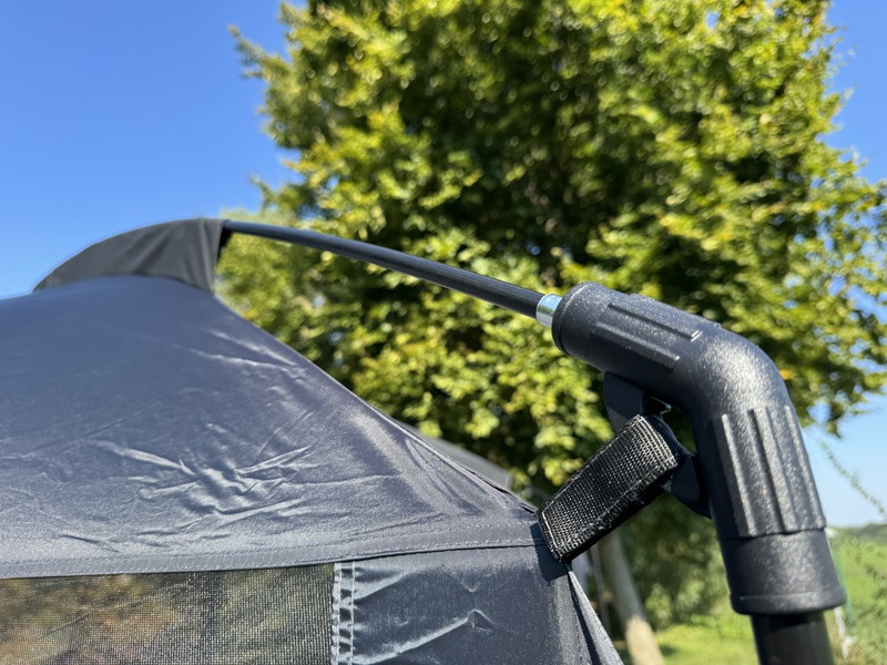 Fiberglas-Stangen (Dach) und Stahlstangen (Seiten)